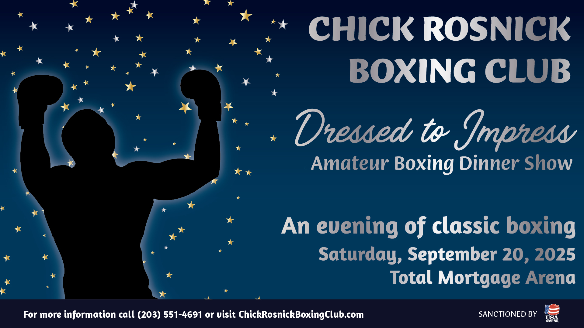 We are so excited to present our 5 th annual amateur boxing dinner show, DRESSED TO IMPRESS, taking place Saturday, September 20, 2025, at Total Mortgage Arena in Bridgeport.